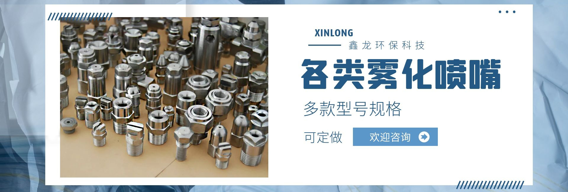 深圳市鑫龍環??萍加邢薰臼菍I從事各類噴嘴研制和開發的廠家,技術力量雄厚,生產工藝先進,檢測手段齊全,管理制度嚴格,產品質量穩定可靠。產品種類多達上萬種,適用于涂裝處理、環保、線路板、電子電力、汽車制造、家電制造、造紙業、紡織業、防火等行業;我公司產品不僅為國內多家大中型企事業選用,還配套外銷日本、美國、東南亞等國家和地區。我們具有本行業前衛的噴嘴制造設施,在我們裝備完善的噴嘴實驗室,可以進行各種類型噴嘴的測試研究,以優化噴霧系統的性能。我公司提供專業技術、應用和售后服務,幫助用戶選擇適合的噴嘴,并保持噴嘴在良好條件下運行。從噴嘴選擇指導,到量身定制的設計,直到噴霧顆粒的測試分析,在每個訂單中都包含了我們好的技術支持,用戶反映:我司顯著的特點是銷售工程師在幫助用戶降低成本、減少加工和維修時間,降低工業用水和化學劑消耗等方面有著非常豐富的經驗,使用戶可以更經濟、更有效的解決實際問題!我們繼續堅持專業是金的理念,制造好的噴嘴是我們永遠的追求和努力!